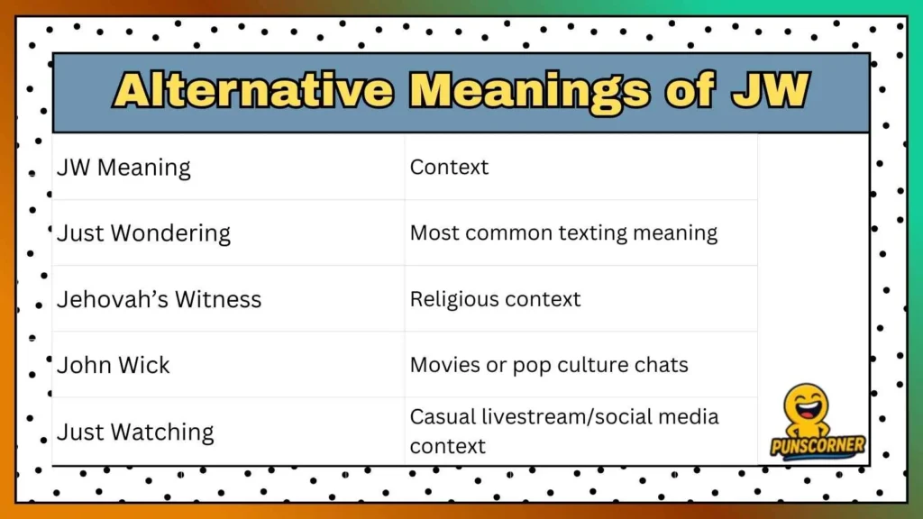 If you’ve ever opened a message and seen someone type “JW”, you might pause and wonder what exactly they’re trying to say.